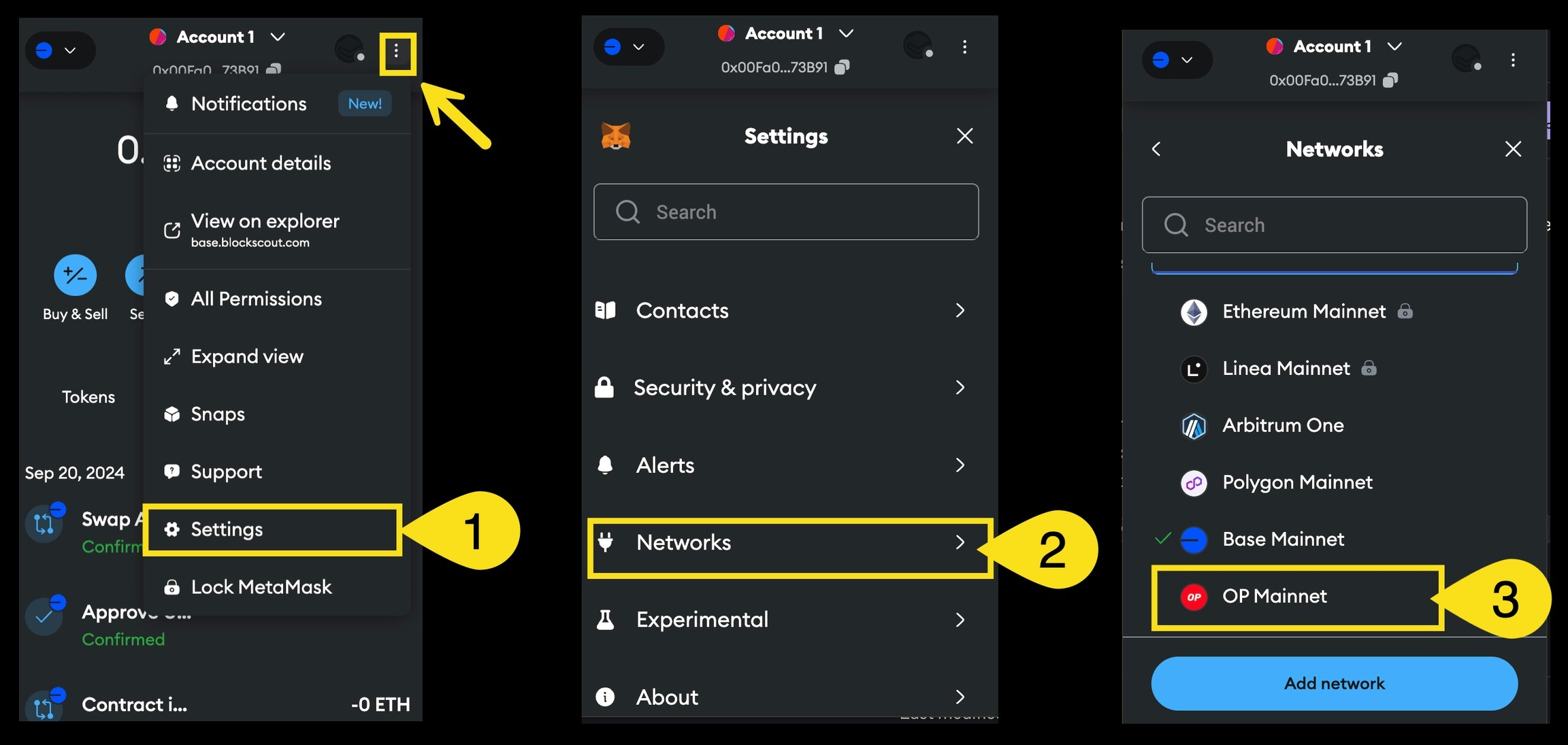 Every wallet handles the explorer link differently, but typically wallets ship with Etherscan links by default. To change, simply go to settings and replace the Etherscan link with the Blockscout one. Here’s how you do it in MetaMask.- Open MetaMask, click the dots to open the menu, and select Settings