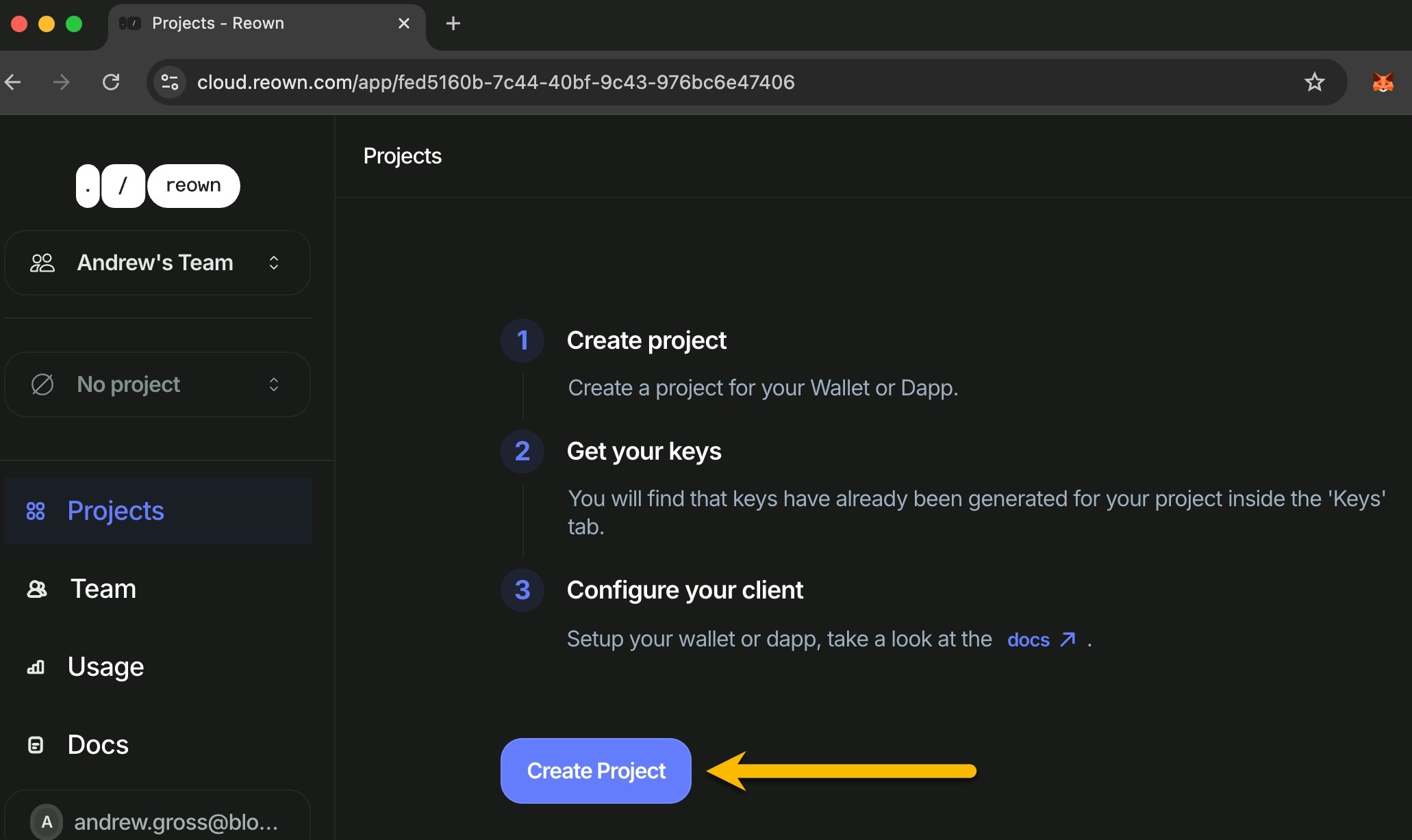 1) Go to https://cloud.reown.com/sign-in and sign in or create an account. 2) Create a new Project