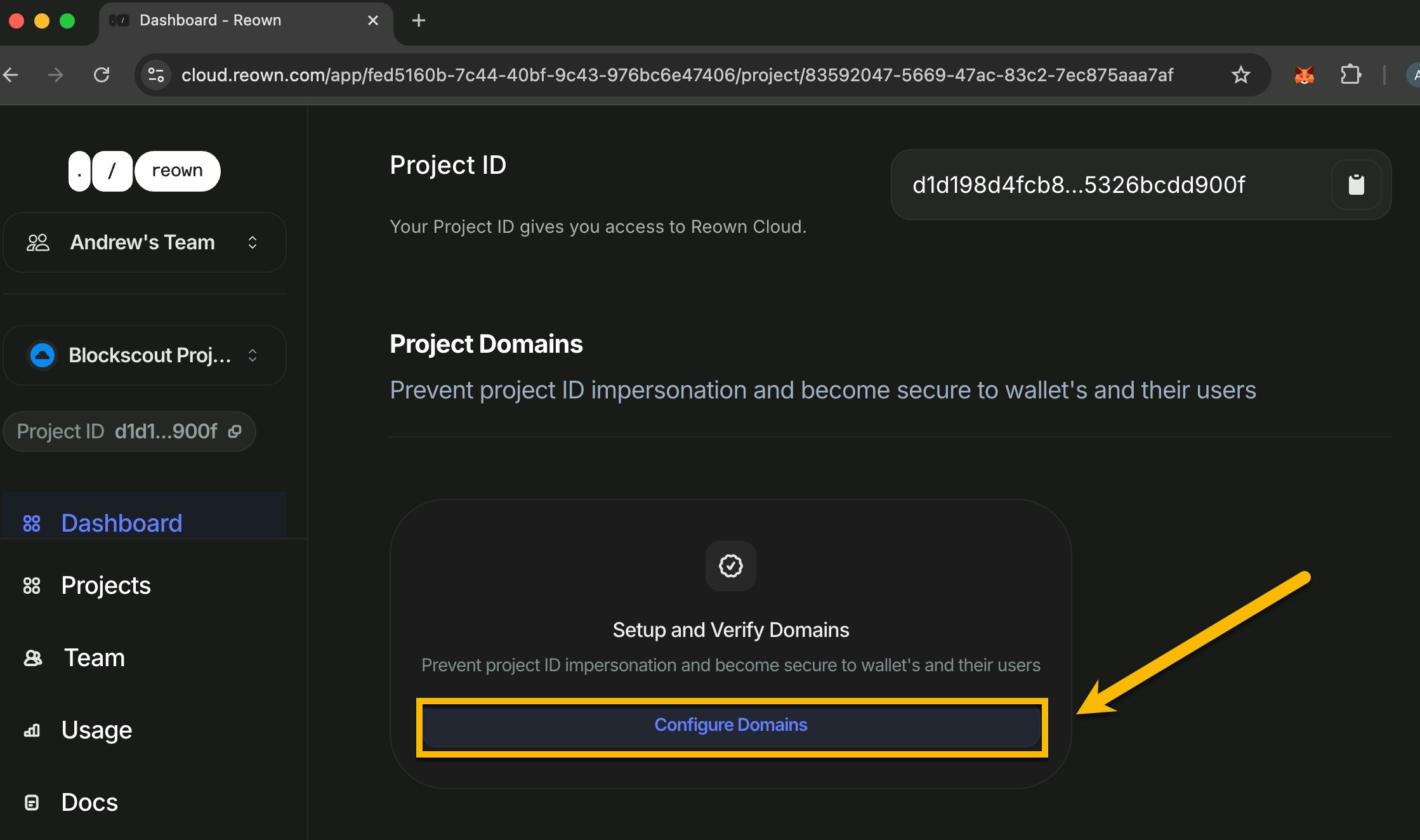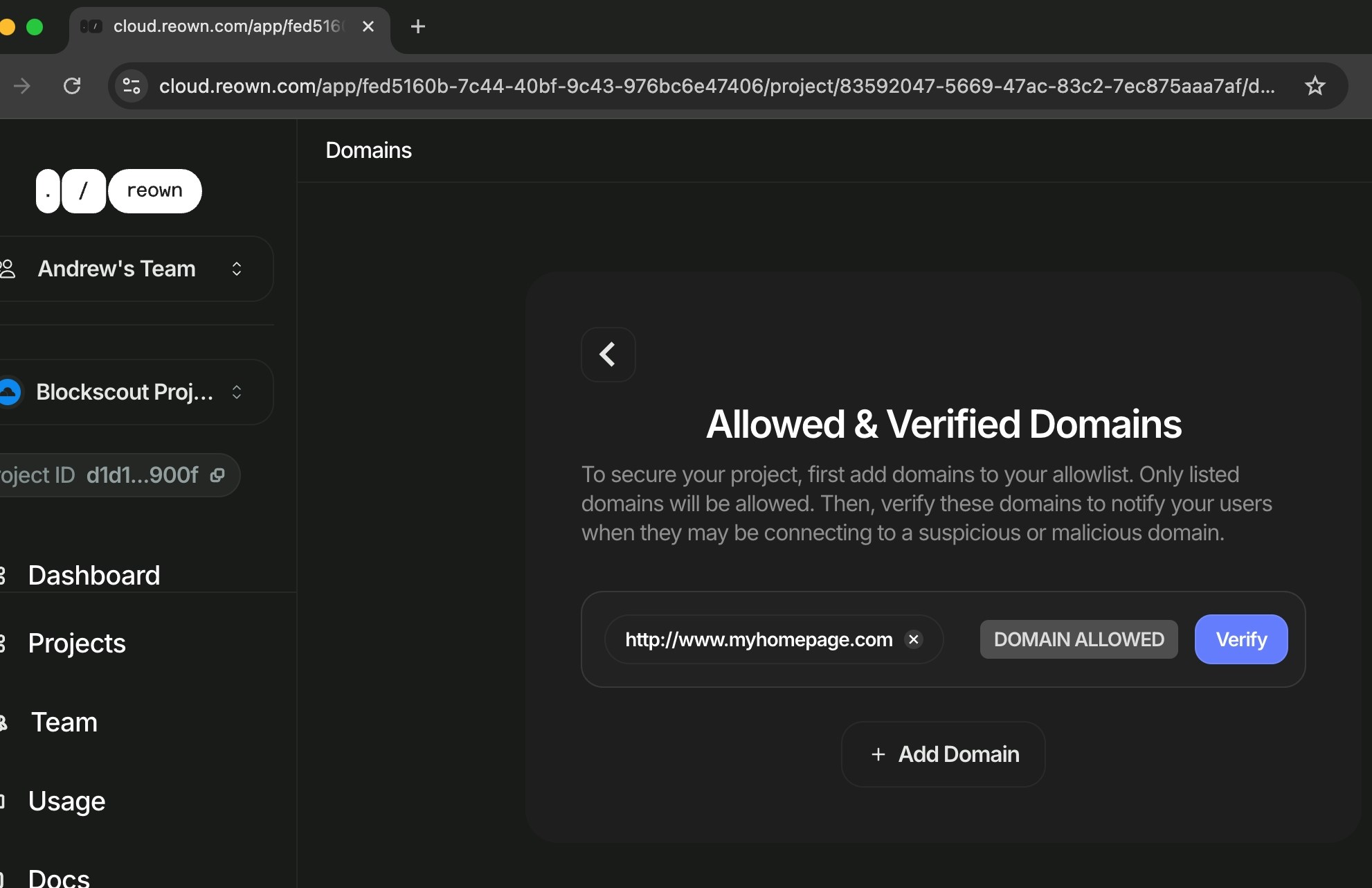 This step is important because the Project ID will be exposed in the browser. Setting allowed domains prevents unauthorized usage of your ID.