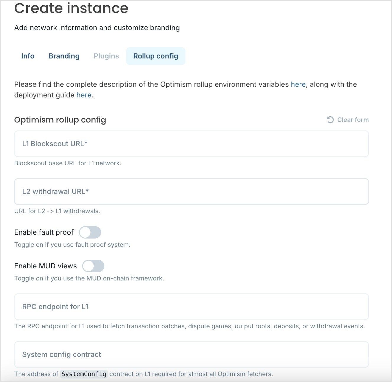 If your chain is a rollup you will select this in the info screen and then fillout the associated Rollup config info.- Read the Rollup deployment and config details