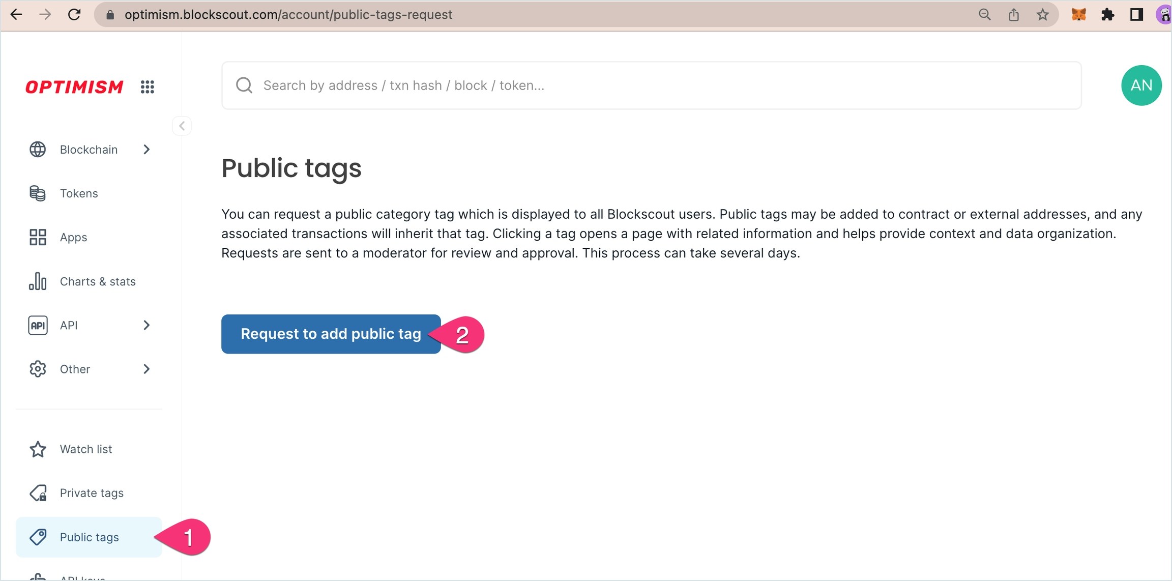 Add a public tag to Blockscout